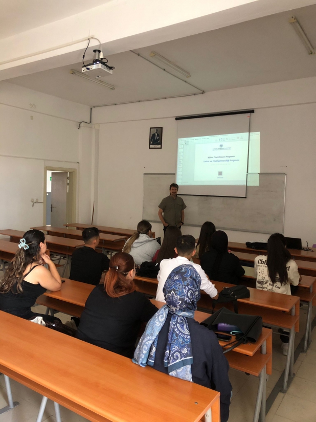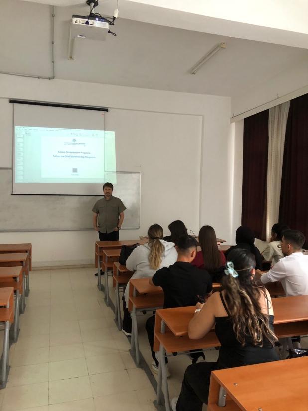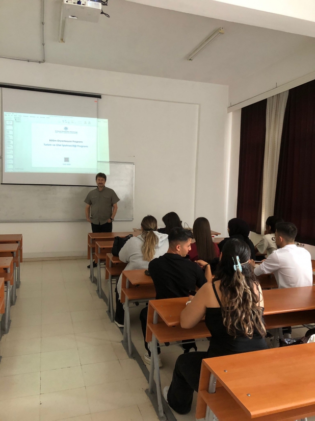 Turizm ve Otel İşletmeciliği Programımız birinci sınıf öğrencilerine Öğr. Gör. Ali ÇAKIR tarafından oryantasyon eğitimi verilmiştir. Eğitim sırasında öğrencilere; üniversiteye uyum süreci, programın akademik yapısı, ders içerikleri, staj süreçleri kütüphane hizmetleri ve öğrenci kulüpleri hakkında bilgi verilmiştir.